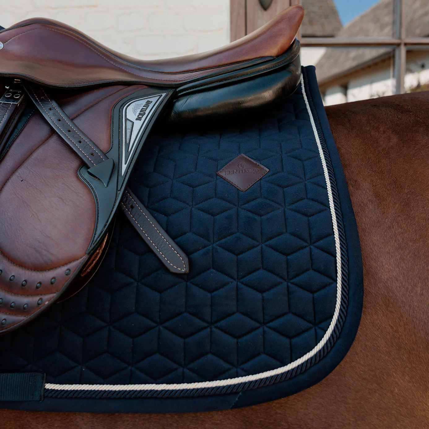 A discreet artificial leather Kentucky logo sits just behind the saddle, leaving ample space for personalised embroidery or sponsor branding.