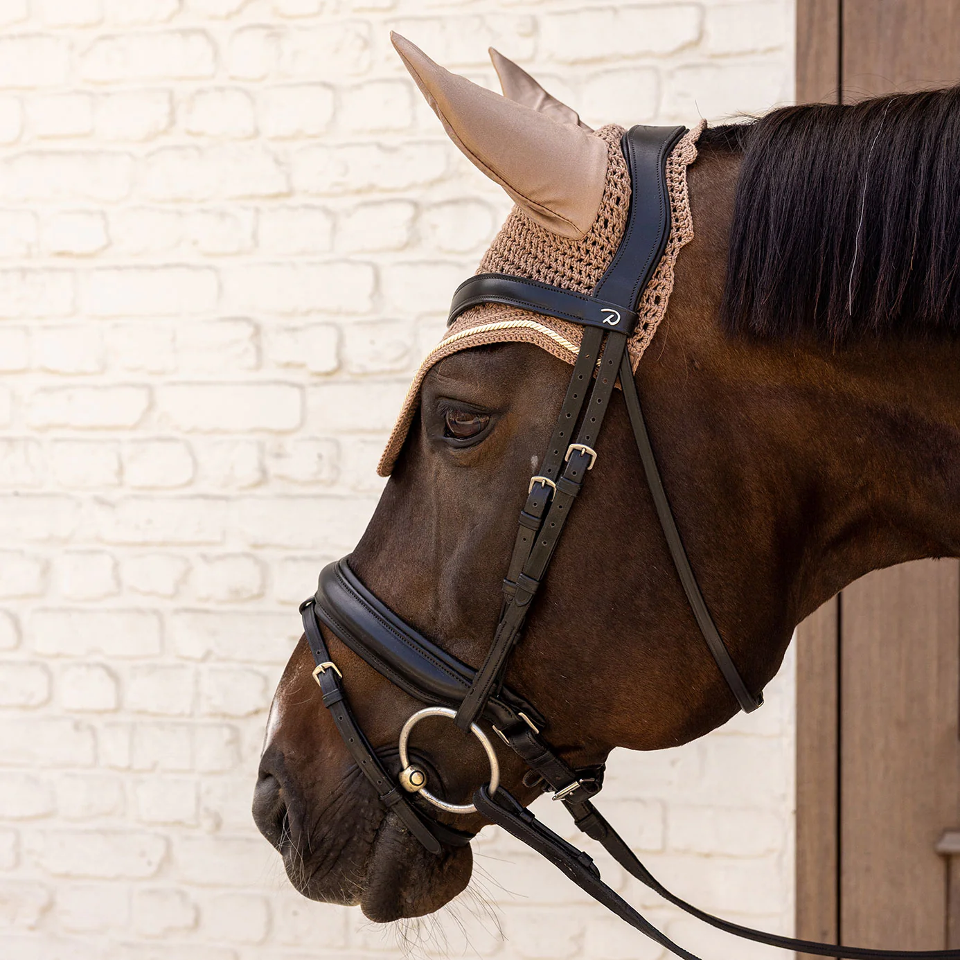 The Kentucky Wellington Velvet Fly Veil in classic Beige brings a timeless, elegant finish to your horse’s look, defined by its modern squared-off American design.