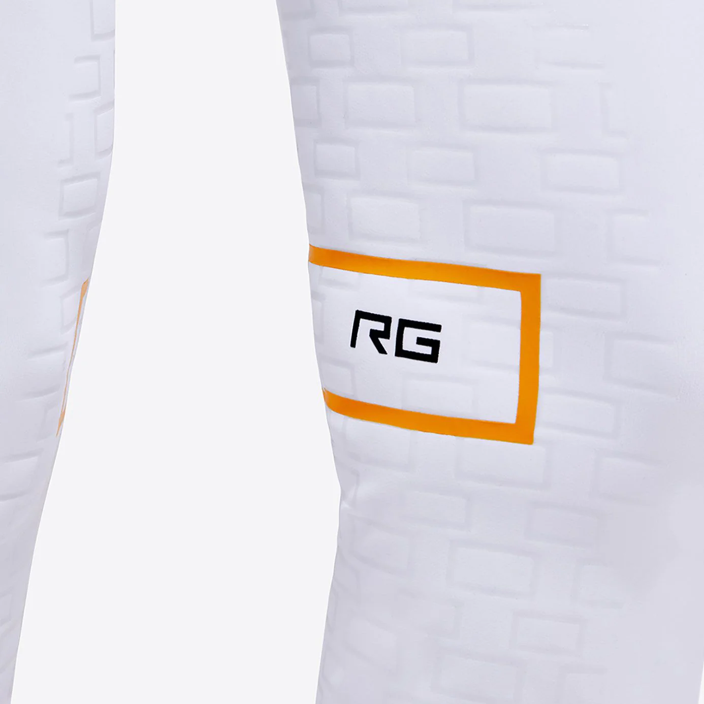 The contrasting yellow printed RG logo finish on the hip and knees finishes the garment with a modern look.