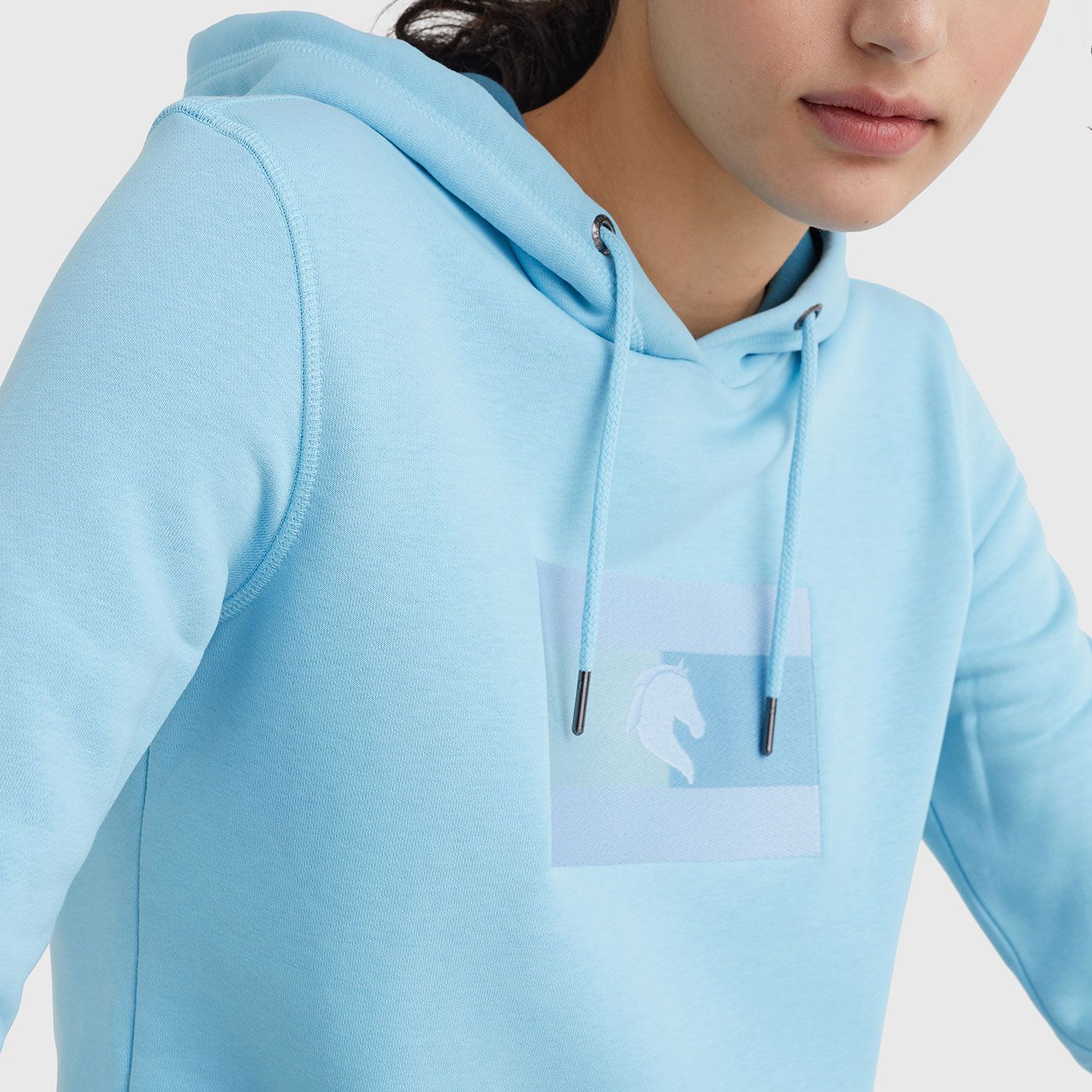 Add a fresh pop of colour to your new season equestrian wardrobe with the Tommy Hilfiger Embroidered Logo Hoody in Summit Blue.